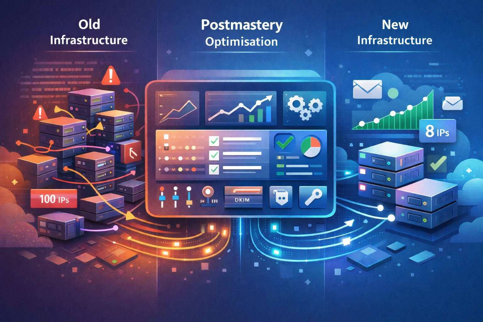 The second option was chosen. And one key factor made it particularly attractive: Laposta owned its IP addresses outright, they could be reused immediately, with no warmup phase required, and with the sending reputation built on those IPs fully preserved.